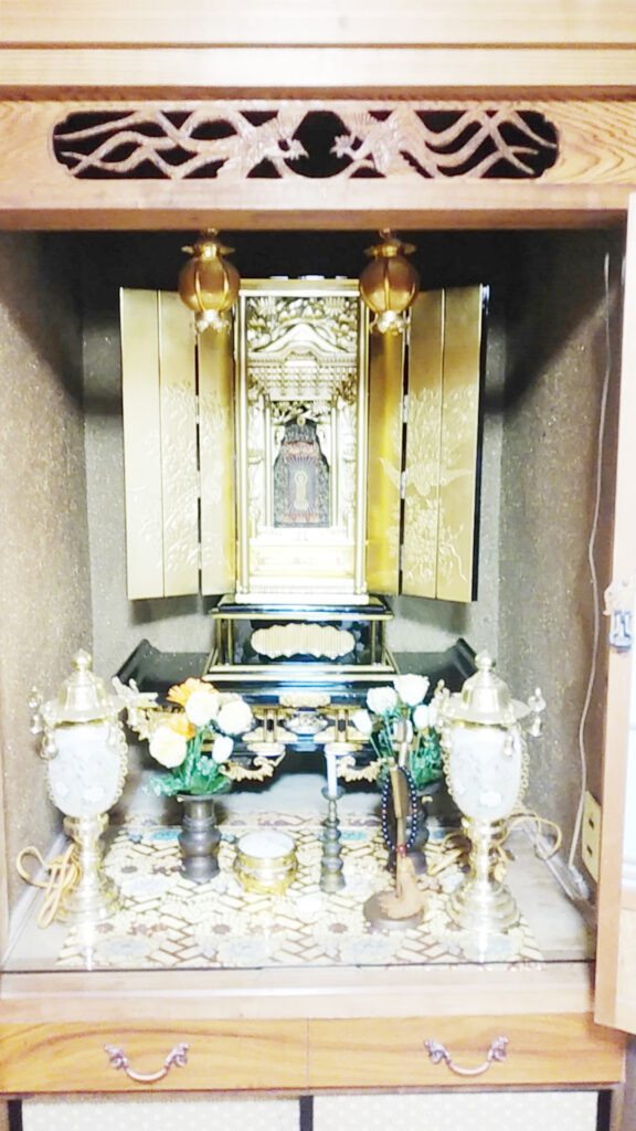 U様は「娘の嫁ぎ先のお仏壇を綺麗にしてもらったことがあったので」と来店されました。お父様の初盆を迎えられるにあたり「実家の仏壇も綺麗にしたかった」と訪ねてきてくださいました。ありがとうございます。修復されたお仏壇をご覧になって、たいへん喜んでいらっしゃいました。遺影写真のお父様に「綺麗になってきたよ、見える?」と話しかけていらっしゃいました。そのお姿を見て「お手伝いできてよかった」と嬉しくなりました。