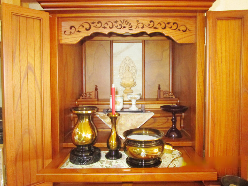 ご紹介で来店されました。神道壇をご希望でした。家具調の神道壇を気に入っていただけました。見ていただいた家具調神道壇は既に売約済みでしたので再入荷後にご案内いたしました。娘さんと再来店され現物をおふたりで見られ、ご契約くださいました。