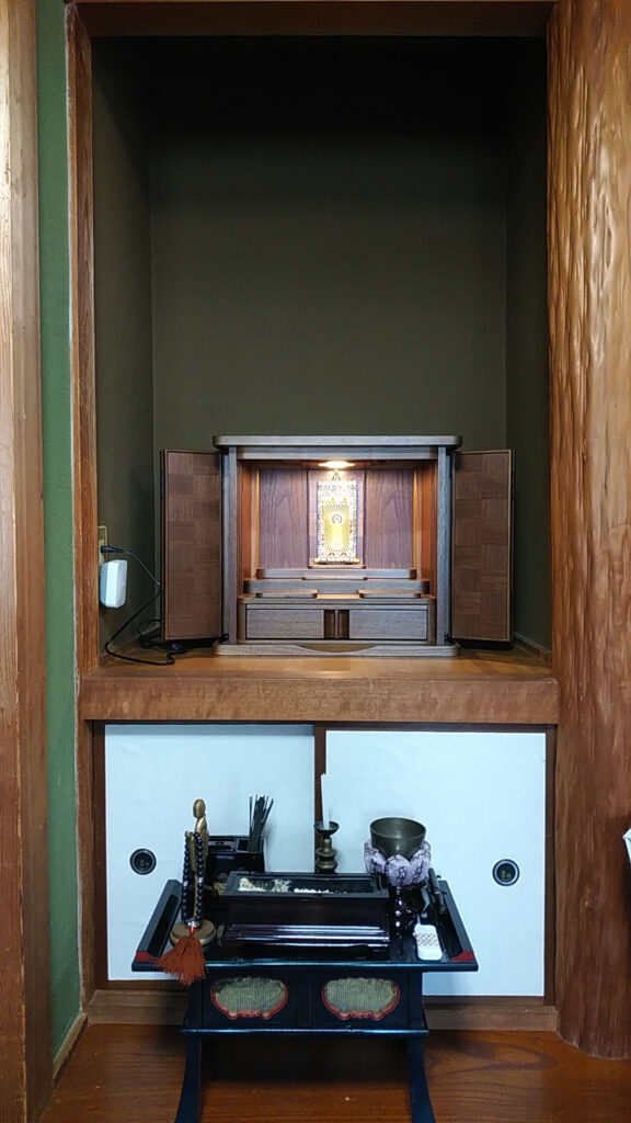定期的にお線香を買いにきてくださるのがご縁となりました。「実家に仏壇はあるが遠くてお参りが大変」「写真だけに手を合わせている」と話されました。売出し期間でしたのでお仏壇の案内をさせていただきました。わたしどもがおすすめした家具調仏壇を気に入っていただけました。当店のご近所様ですので、またお線香を買いにいらしてください。何かありましたらご相談ください。ありがとうございました。
