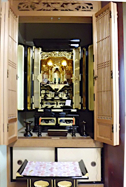 仏間をお持ちのJ様。13号ほどの小さな仏壇を探していらっしゃいました。「15号くらいの大きさがないと隙間ができますよ」とお話させていただきました。金仏壇「京型上置15×33」をご契約くださいました。「仏具付なので安心です」と言っていただけました。
