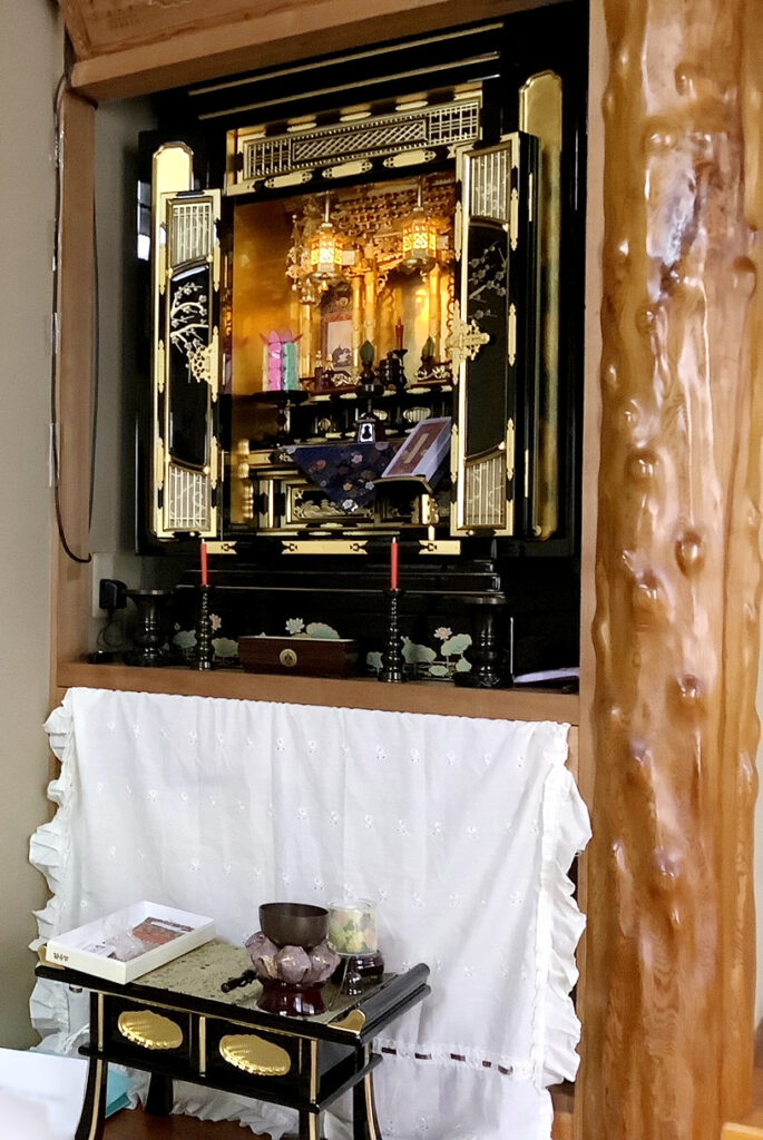 この度はまことにお悔やみ申しあげます。亡きお父様はお酒が大好きだったとの事。遺影写真にお酒が写っているのが印象的でした。どのような仏壇を選んでいいか悩んでおられました。浄土真宗専用の金仏壇をお勧めいたしました。蒔絵入の台との相性もばっちりでした。お盆提灯もぜひご検討ください。お待ちしております。