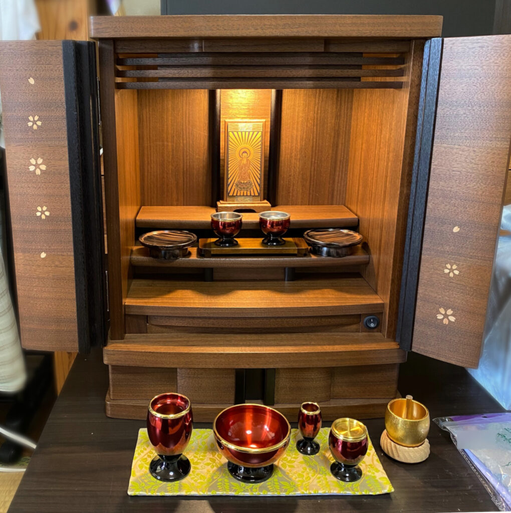 お父さまが施設に入所されるのにあたりお仏壇を購入されました。お母さまの御葬儀の日に納品することになってしまいました。たくさんの写真に囲まれたお仏壇を喜んでいらっしゃいました。新生活の中で、永く手を合わせていただければと思います。
