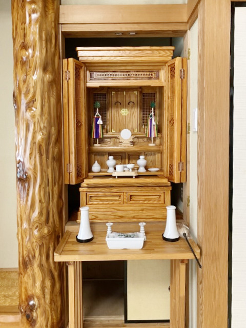 この度は神道壇をご購入くださり、まことにありがとうございました。ご主人様を亡くされたE様。神間にピッタリなものをご希望でした。いろいろと弊社系列店より取り寄せた写真を見て選んでいただきました。今後とも心を込めてサポートさせていただきます。お気軽にお声掛けくださいませ。