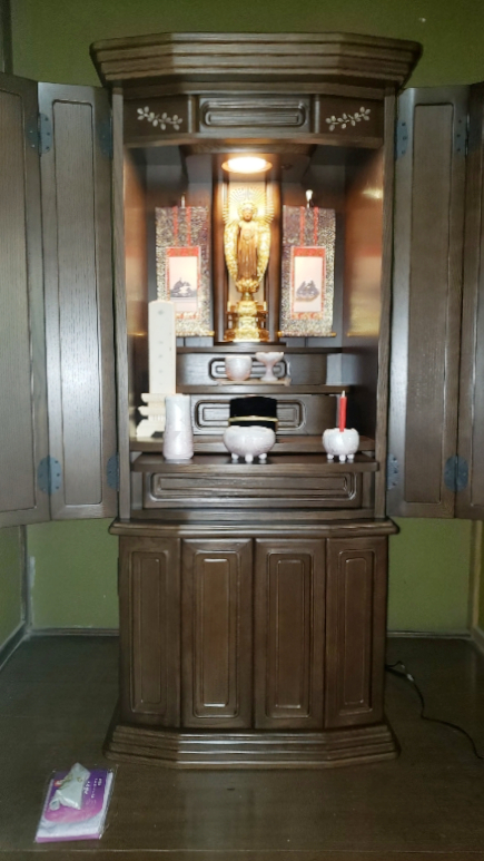 この度のお仏壇ご購入、まことにありがとうございました。M様は知人様のご紹介で来店されました。ご実家に大きな金仏壇をお持ちでした。ご実家を新築されるにあたり「家具調仏壇に買い換えたい」とのご相談でした。周年祭セール中であり、タイミング良くお勧めすることができました。喜んでいただけ私どももたいへん嬉しく思います。これからも末永いお付き合いよろしくお願いいします。
