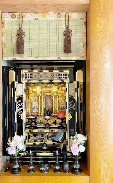 この度は姶良店にご来店いただきまして、まことにありがとうございました。ご姉妹でいらっしゃいました。入口に展示してある金仏壇「満月」をとても気に入ってくださいました。仏間を採寸させていただきますと高さがありましたので、仏間に合うサイズの「満月」をご用意させていただきました。また竹すだれもご注文くださいました。とても喜んでいただけました。これからも何かございましたら、お気軽にご連絡くださいませ。今後ともどうぞよろしくお願いいたします。