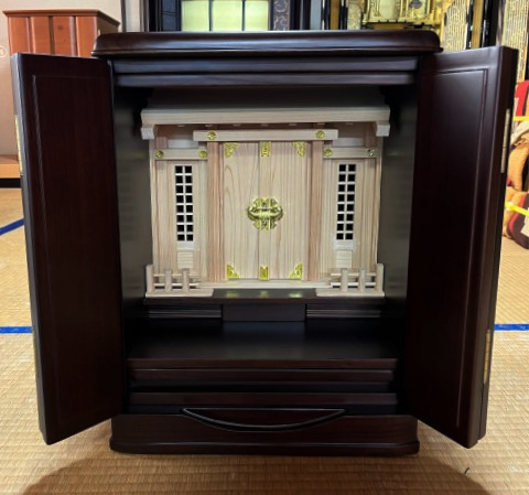 お位牌を入れる神棚を探しに来店されました。神棚にはお位牌が入らないので、神道壇のお話をさせていただきました。店内を見てまわられ家具調神道壇を気にいられました。お社の中にお位牌がゆったり入りますので、ご先祖様もたいへんお喜びのことと思います。ご縁をいただきありがとうございました。