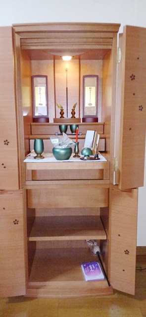 「以前来店してお仏壇を下見しました」「それからなかなか時間がとれず、今回ようやく再訪できました」とK様。明るい色で桜柄の家具調仏壇をお選びいただきました。鹿屋店をご利用いただき、誠にありがとうございました。