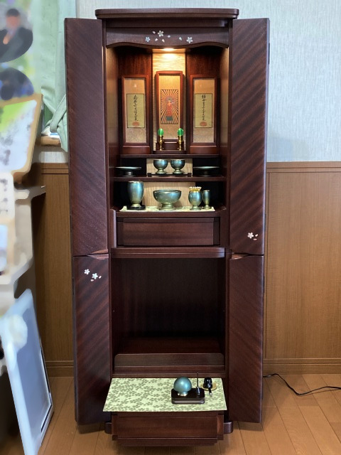 このたびはご縁をいただき、誠にありがとうございます。K様のお気持ちに少しでも寄り添うお手伝いができたことに感謝申し上げます。ご自宅にお仏壇を納め荘厳させていただくと、不思議なことに、そこに亡き奥様がご家族を温かく見守っていらっしゃるように感じました。これからもずっと変わらずご家族と一緒にいてくださることと思います。
