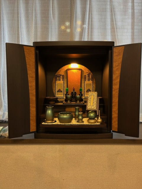 ご家族で来店されました。リビングに置ける小型のお仏壇をお探しでした。店内のお仏壇を見てまわられ家具調仏壇を皆さん気に入ってくださいました。デザインが素敵ですのでリビングに置かれても自然な雰囲気でお部屋に合っていると思います。ご先祖様もお喜びのことと思います。ご縁をいただきありがとうございました。