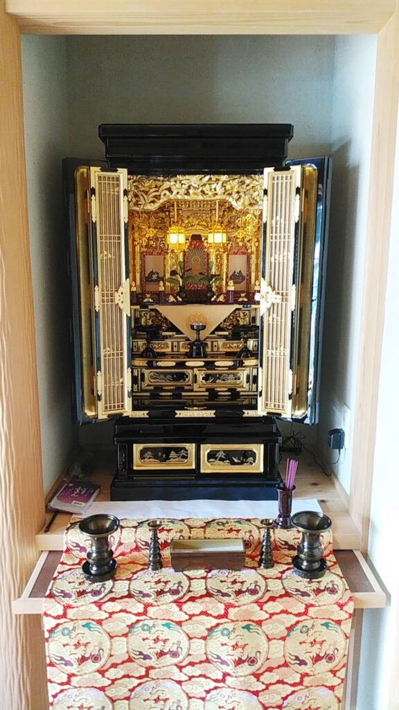 お父様を亡くされたK様。「実家の母が見ている仏壇を持ってくるわけにもいかないので」と金仏壇を探していらっしゃいました。川内店に足を運んでくださいました。ありがとうございます。仏間に引き出しを作ってありますので、お飾りもしやすいと思います。末永く使ってください。ありがとうございました。