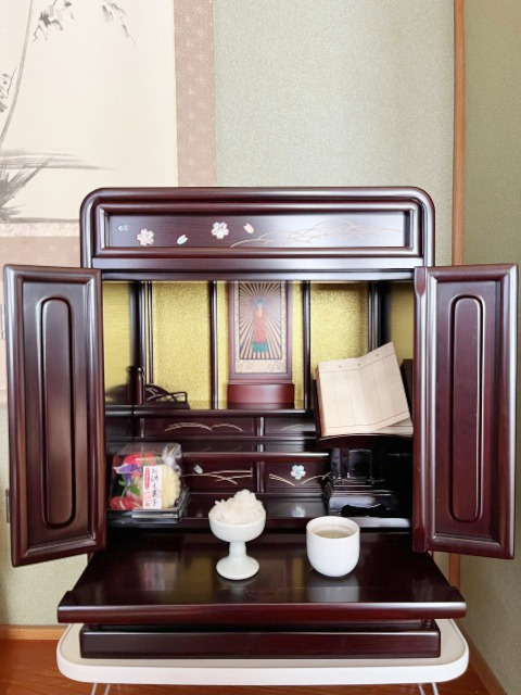 床の間に置くお仏壇をお探しとのことでした。「あまり大きくないお仏壇が良い」とのご希望でした。店内を見て回られ、小型の唐木仏壇を気に入って契約されました。お手入れもしやすく、毎日のお勤めもスムーズに行えることと思います。何かございましたら、どうぞお気軽にご連絡ください。この度はご縁を賜り、誠にありがとうございました。