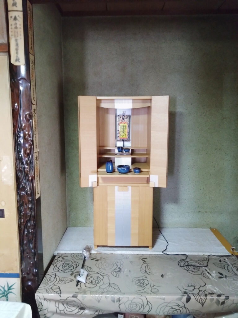 直置きタイプの家具調仏壇をご購入いただきました。まことにありがとうございます。奥様を亡くされ、お仏壇を購入するか迷われておられました。娘様とご相談の上、ご購入の運びとなりました。今後とも何か私にお役に立てることがございましたら、お気軽にお声掛けくださいませ。