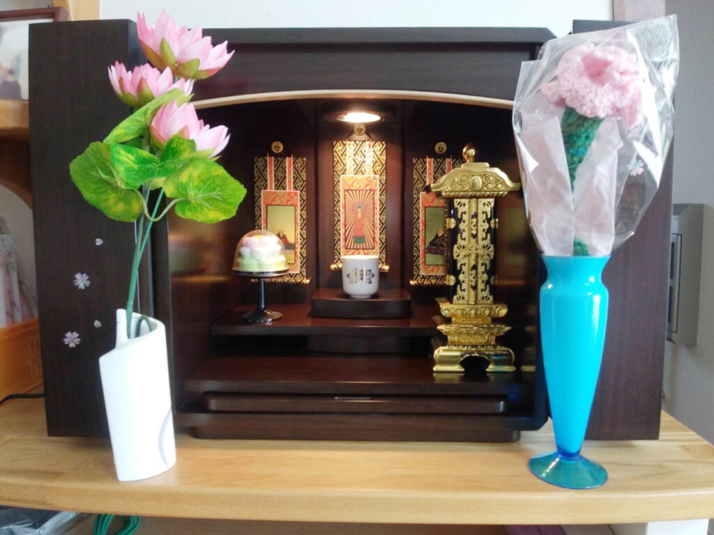 宮崎市にお住いのH様は「母の手元供養がしたい」とご希望でした。H様のため都城在住の弟様がご家族でご来店くださいました。ケータイのテレビ電話を使いおH様のご希望を入れながら家具の色に合うお仏壇を選ばれました。心を込めて手を合わせていただいているとのこと。ありがとうございました。