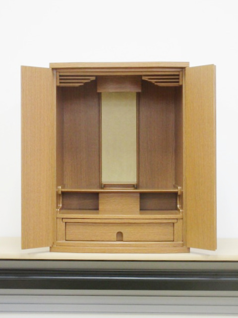 鶴商様のご紹介で来店されました。「小型のお仏壇で良い」とのことでした。奥様もご主人様も家具調仏壇を気に入られました。