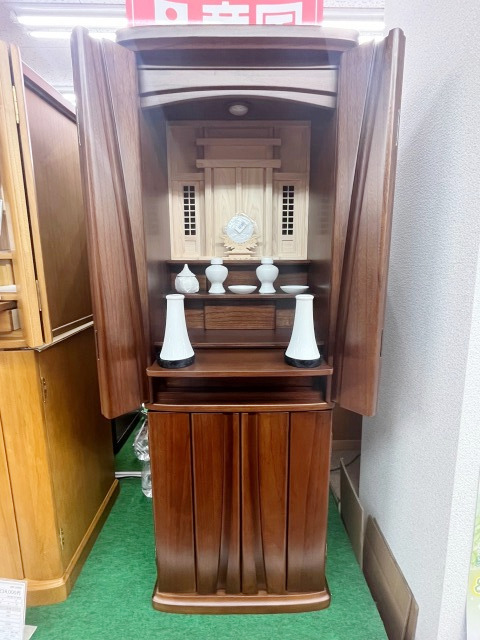 お位牌を納めるための神棚をお探しに来店されました。お位牌も神鏡もゆったりと納められる神道壇をご案内いたしました。下台付きの神道壇をご契約いただきました。屋根のあるお社にお位牌を納められるので、ご先祖様もさぞお喜びのことと存じます。ご縁をいただき、誠にありがとうございました。