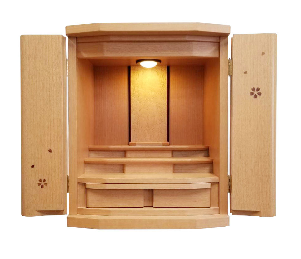 ご夫婦で来店され「小さなお仏壇を探してます」とおっしゃいました。大きさ色合いを良く観ながら選ばれました。家具調仏壇を「桜の絵柄が可愛い」と奥様が気に入られました。ご主人とおふたりで「明日から手を合わすのが楽しみだ」と話されていました。この度のご縁に感謝いたします。ありがとうございました。