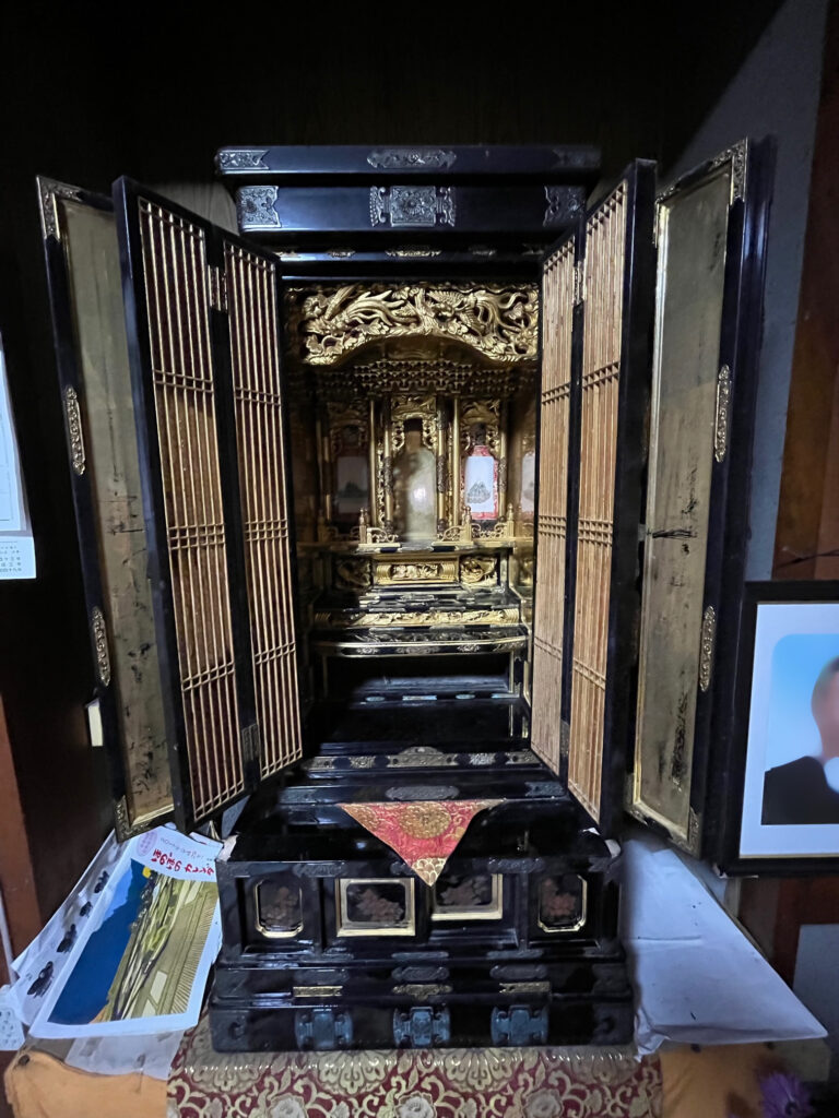 以前からお仏壇が気になっているとのことで、今回修復の見積りをさせていただきました。修復されたお仏壇をご覧になり喜んでいらっしゃいました。職人、スタッフ一同、とても嬉しく思います。GL加工も施しておりますので、今後もご家族を末永く明るく照らしてくれることと思います。このたびのご縁をいただき、ありがとうございました。
