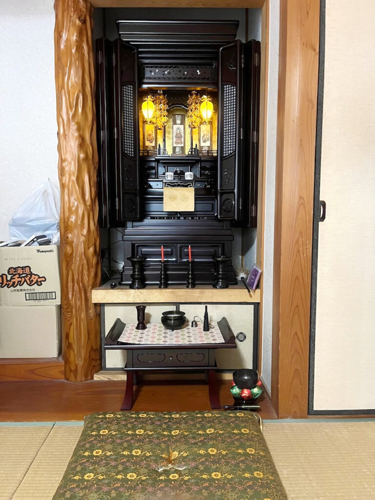 お母様の初七日を前にご夫婦でご来店されました。唐木仏壇をご契約をいただきました。納品の際、吊灯篭に灯りをともすと、その幻想的な雰囲気に喜んでくださり、「キレイ!お店で見た時よりさらに良い!」とのありがたいお言葉を頂戴しました。ご縁をいただき、心より感謝申し上げます。今後ともどうぞよろしくお願いいたします。