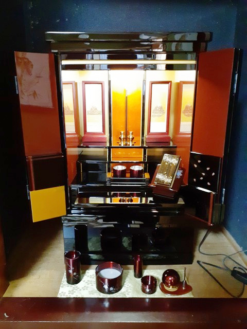 鹿屋店とのご縁をいただき、誠にありがとうございました。ご夫婦でご来店くださり、できるだけ場所を取らないお仏壇をお探しでした。塗モダン仏壇をサイズやデザインともにお気に召していただけました。