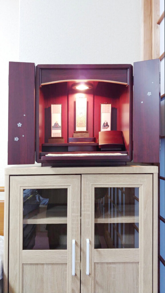 この度はご相談いただき、誠にありがとうございました。ご夫婦で施設にご入居されるのを機に、コンパクトな仏壇へのお買い替えをご希望でした。ご本尊脇侍は新たにお迎えになりました。他の仏具はこれまでのものを引き続きご使用される形でご契約いただきました。これまでと変わらずご先祖様の供養ができることを喜ばれ、安心されているご様子でした。
