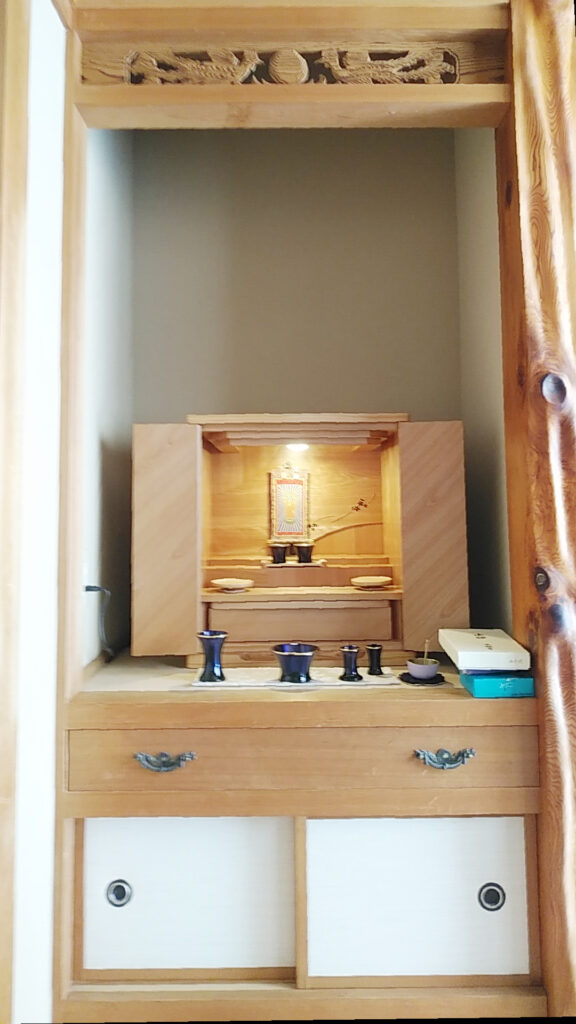 ご両家の実家にお仏壇があるものの、どちらも空き家になってしまっているとのことで、ご自宅用のお仏壇をご準備されました。優しい雰囲気のお仏壇をお選びになり、ご実家のお仏壇を供養されたことで、ほっとされたのではないでしょうか。このたびのご縁に心より感謝申し上げます。誠にありがとうございました。
