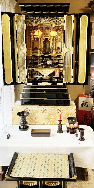 このたびはご縁をいただき、誠にありがとうございます。お母様がお亡くなりになり、お仏壇の買い替えのためにご来店くださいました。弊社製造の国産仏壇をご覧いただき、彫刻部分がすべて華やかな彫淡彩色で施された金仏壇を大変お気に召していただけました。心より嬉しく思います。今後とも末永いお付き合いをどうぞよろしくお願い申し上げます。