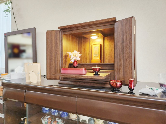 遠方よりお越しいただき、誠にありがとうございました。亡き義父様に手を合わせたいとのことで、自宅用の小型仏壇をお探しでした。お気に召していただけたことを嬉しく思います。また、義理のご実家のお仏壇についてもご検討されているとのことでしたので、スタッフ一同、いつでもご相談をお待ちしております。