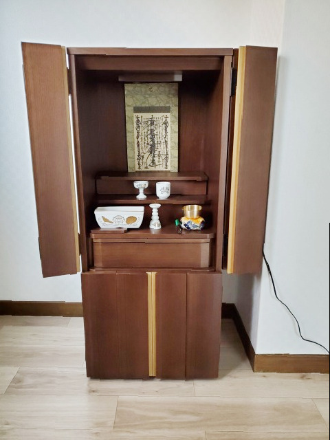 M様、このたびは誠にありがとうございました。何度も足を運んでくださいました。家具調仏壇を選んでいただけましたこと、大変嬉しく思います。お部屋にとてもよく馴染み、ご満足いただけたご様子を拝見し、安心いたしました。今後とも末永いお付き合いをどうぞよろしくお願い申し上げます。