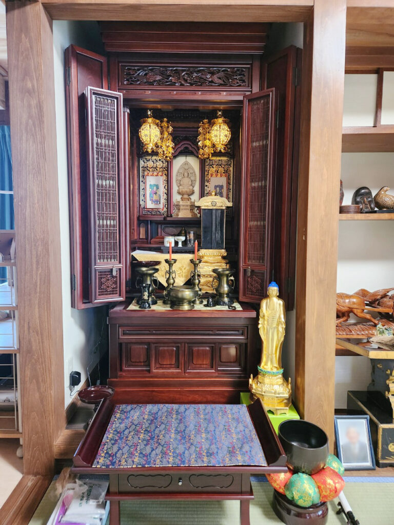 このたびは、当社のお仏壇修復についてお話をいただきありがとうございました。しかし、お仏壇の木地に傷みが見られたため、買い替えをご提案し、何度もご足労いただく形となりました。お位牌の大きさに合ったお仏壇をお探しの中で、鹿児島本店にございました商品をご契約くださいました。誠にありがとうございました。その後の仏間工事においても、大工さんと打ち合わせを重ね、おかげさまで無事に美しく納品させていただくことができました。今回の経験は、私自身にとっても初めてのことが多く、大変勉強になりました。改めまして、心より感謝申し上げます。