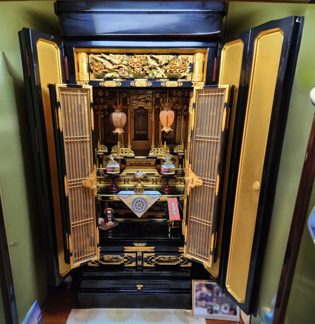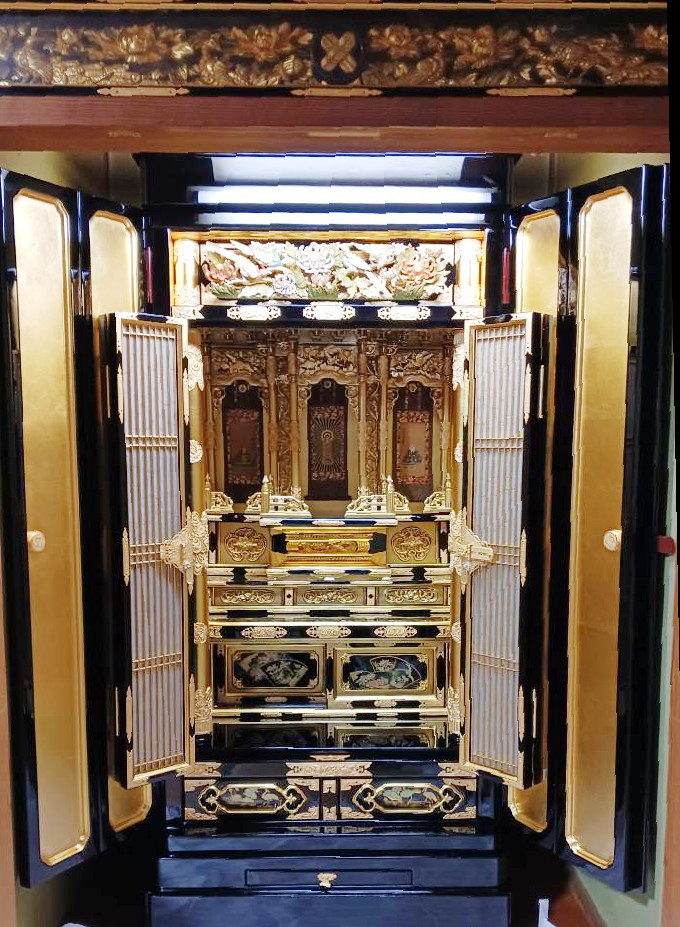 このたびはお仏壇修理のお問い合わせをいただき、誠にありがとうございました。本体上部の漆が大きく剥がれており、私自身も初めて目にするケースでした。ご購入からの年数を考慮し、このタイミングでの修復をご提案させていただきましたが、「彼岸に間に合って良かった」とおっしゃっていただき、大変嬉しく思いました。