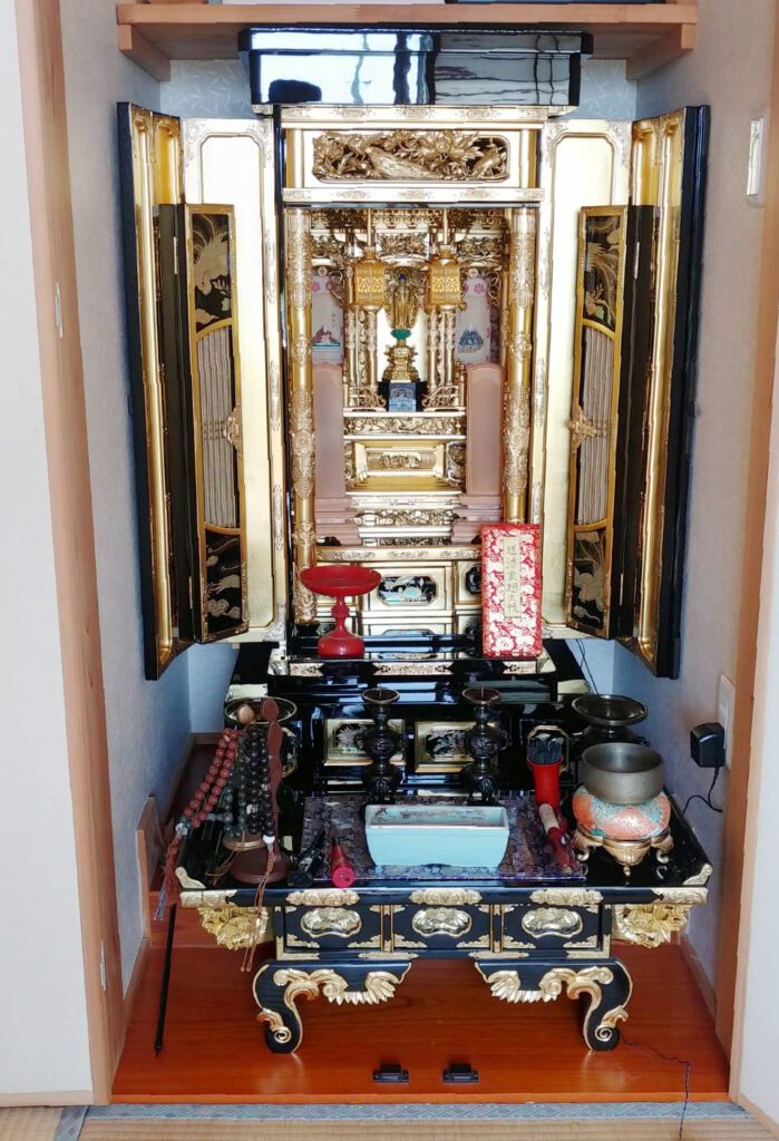 実家のお仏壇を、お母様の七回忌を機にご自宅へお迎えになられたとのことでしたが、「素人で移動させたものだから金箔が剥げてしまって、以前CMで見たGL加工を思い出して…」とお話しくださいました。このたびは知人様のご紹介を通じて、信用してお任せいただき、心より感謝申し上げます。「いい仕事をされていますね」と仕上がりをお褒めいただき、大変感激しております。