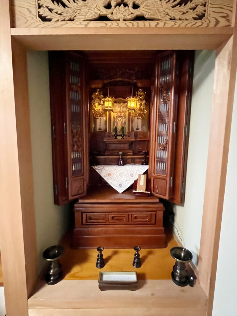 ご家族でご来店くださいました。誠にありがとうございました。仏間に合うものをお探しとのことでした。仏間の改造も視野に入れられ、気に入られた3基を実際に持ち込みさせていただきました。それぞれの仏壇を仏間に置いた際の雰囲気を確認され、最終的に写真の唐木仏壇を皆さまでお気に召してくださいました。これから、このお仏壇が末永くご家族を見守り続けてくれることと思います。このたびはご縁をいただき、心より感謝申し上げます。