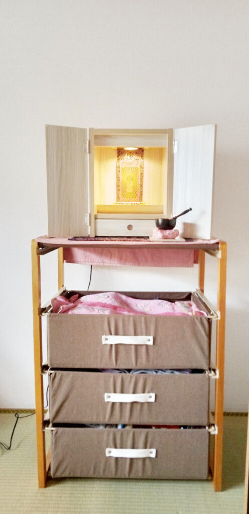 この度は誠にありがとうございました。お引越しを機に、現在お持ちの金仏壇から小さなお仏壇へ買い替えたいとのことで、ご来店くださいました。明るい色のお仏壇で、いずれは娘様が引き継ぐため、軽くてできるだけ小さいものをご希望されていました。お取り寄せしたお仏壇を大変喜んでいただけて、私どもも嬉しく思います。今後ともどうぞよろしくお願いいたします。
