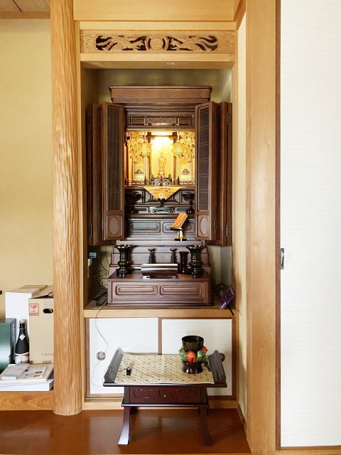 このたびは、唐木仏壇をご購入くださいまして、誠にありがとうございます。これまでお使いになられていた小さいお仏壇から、ご自宅の仏間に合うサイズのお仏壇へとお買い替えいただきました。今後とも何かお困りごとがございましたら、どうぞお気軽にお声がけくださいませ。