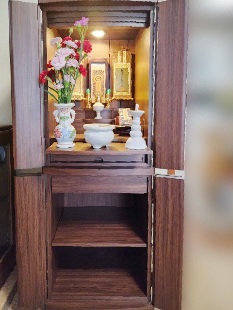 お母様のご逝去に際し、慎んでお悔やみ申し上げます。この度は、ご家族皆様でご来店いただき、誠にありがとうございました。お選びいただいたお品は、お部屋によく調和しているかと存じます。また、お墓の銘碑彫刻についても、まだお済みでないとのことでしたので、ご依頼を承りました。今後とも、どうぞよろしくお願い申し上げます。