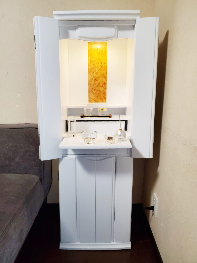 家の家具に合うようなモダンでスタイリシュな物を探しておりました。ネットで購入を考えていたのですがスタッフの方の親切な対応により、お値段もお仏壇もっとてもいい物が来ました。49日にも間に合わないだろうと考えておりましたがスタッフの方の迅速の対応により納期もとっても早くて大満足です。ありがとうございました。