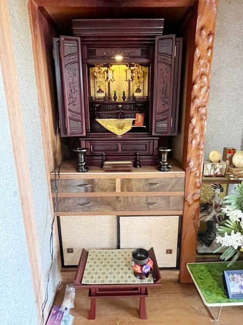 ご夫婦でご来店くださいました。誠にありがとうございます。仏間に合うお仏壇をお探しでした。店内をご覧になり、写真の唐木仏壇を選ばれました。納めた際、サイズがぴったりで、お部屋全体が引き締まった印象になったことと存じます。これからも末永く、ご家族を明るく照らし続けてくれることでしょう。このたびのご縁に心より感謝申し上げます。