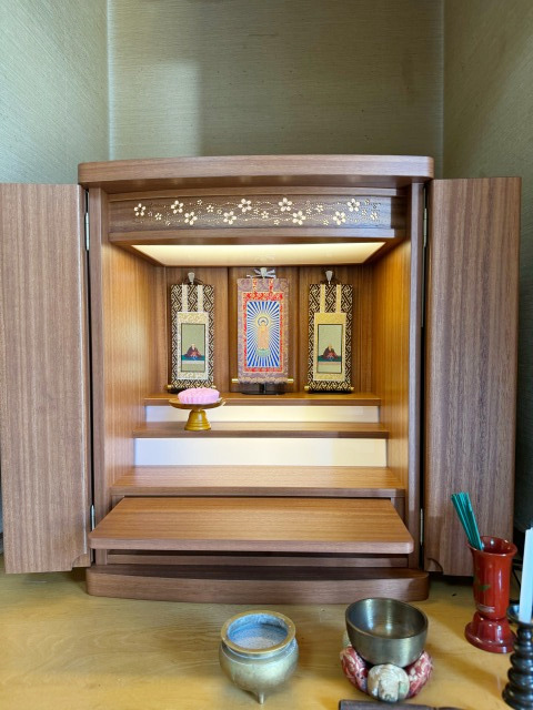 納品を担当させていただきました小倉と申します。この度は本店にて専務がご対応させていただき、家具調仏壇をご購入いただきました。誠にありがとうございます。ご自宅に設置が完了いたしました。喜んでいただけたこと、大変嬉しく思っております。また、納品後すぐに花立を店頭にてご購入くださいました。心より感謝申し上げます。今後ともどうぞよろしくお願いいたします。