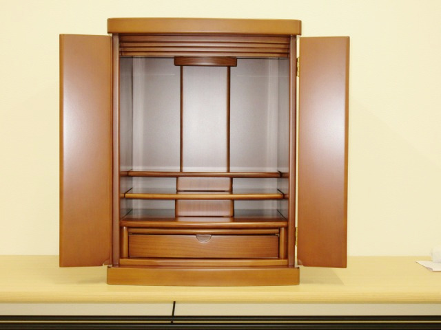 ご実家には立派なお仏壇をお持ちでした。現在お住まいのマンションには大きすぎるとおっしゃられ、今回コンパクトなお仏壇を購入されました。お仏具はこれまでお使いのものをそのままご使用されるとのことですのです。今後とも新しいお仏壇を大切にされてください。こちらの対応にもご満足いただけたようで、何よりです。この度はご縁をいただき、誠にありがとうございます。