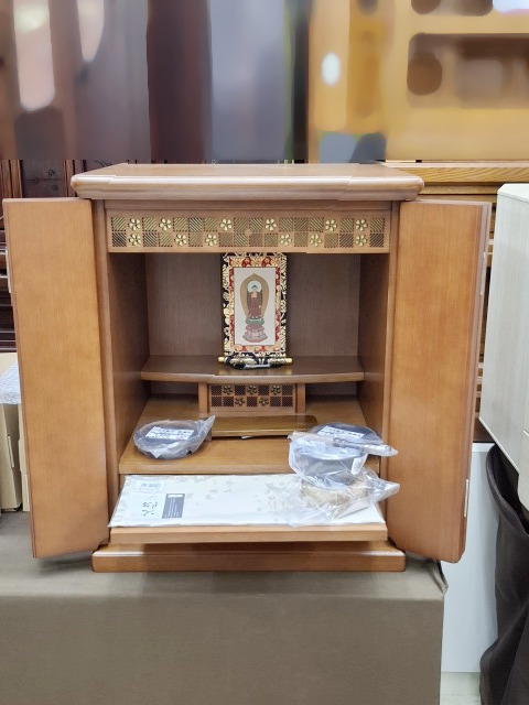 「小さくとよいから用意したほうが良い」とのアドバイスをいただいたそうです。はじめ奥様が下見に来られ、その後ご夫婦で再来店されました。「せっかく用意するのできちんとしたものを選ぼう」とおっしゃいました。納得いかれるお仏壇を選んでいただけることができました。喜んでいただけました。この度はご縁をいただき、ありがとうございました。