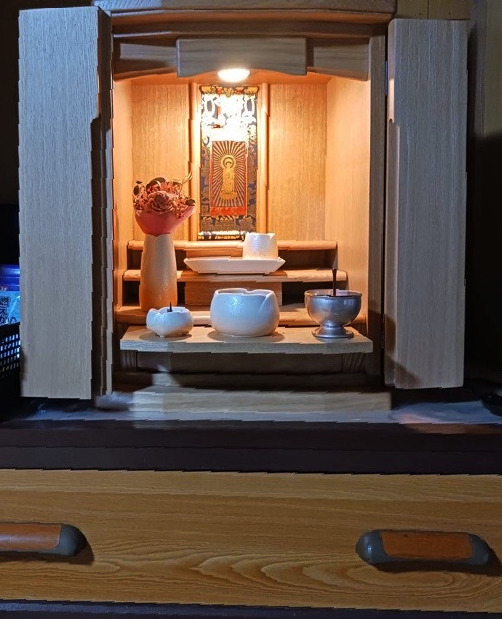 親子3名様でご来店くださいました。じっくり検討され家具調仏壇を選ばれました。本日お届けにあがりました。心優しい娘さまがいらして心強いことと思います。どうかみなさまお元気でお過ごしください。ご不明なことなどございましたら、お気軽にお声掛けください。今後ともよろしくお願いいたします。
