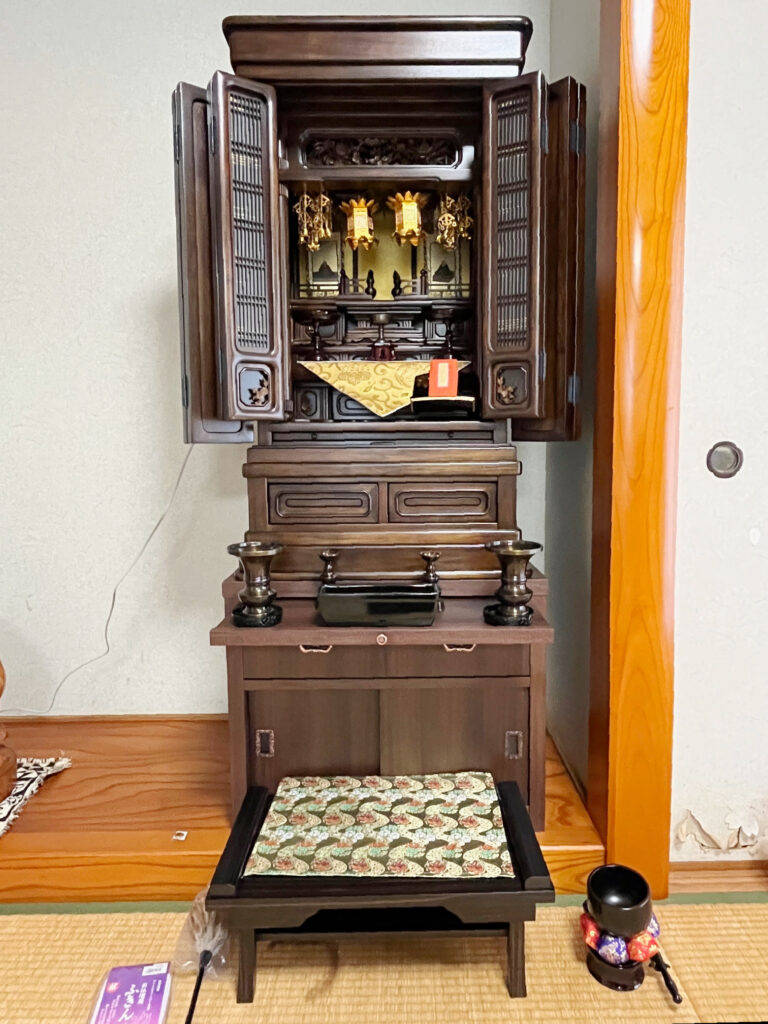 ご夫婦で来店されました。「実家に仏壇はあるが、自分の家にも置きたい」と話されました。床の間に置かれるとのことでしたので高さが必要でした。工場で下台を作ることになりました。立派なお仏壇が入りお家がたいへん引き締まったことでしょう。ご先祖様もたいへん喜んでいらっしゃることでしょう。ご縁をいただき、ありがとうございます。