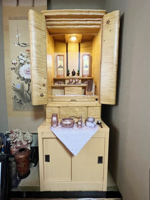 ご家族で来店されました。家具調仏壇をたいへん気に入っていただきました。床の間に置かれるご予定でしたので、高さをあげるために下台を工場で作らせていただきました。お家の中心にふさわしい立派な佇まいになったかと思います。ご先祖様も喜んでいらっしゃることでしょう。ご縁をいただき、ありがとうございます。
