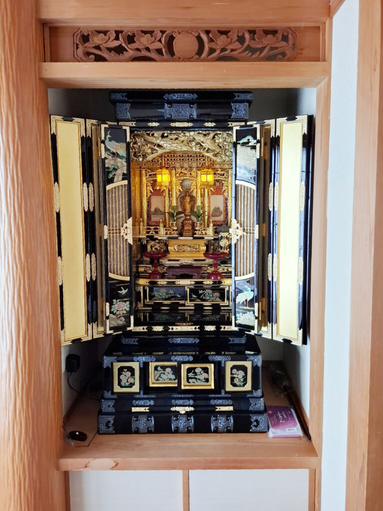 「母が大事にしていたお仏壇なので綺麗にして使いたい」とのご相談でした。修復をさせていただきました。綺麗になったお仏壇に今までお使いだった仏具を飾りながら「引き継ぐことができて嬉しい」と喜んでいらっしゃいました。嬉しく思います。この度はありがとうございました。