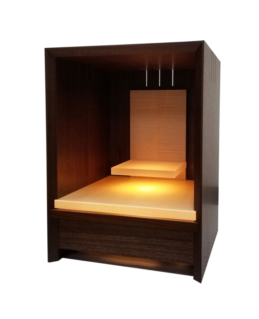 ご夫婦で来店されました。施設に移られるため小型仏壇をお探しでした。扉のないシンプルなつくりのお仏壇です。下から照らす照明が上品な雰囲気です。是非できるだけ長く使っていただけたらと思います。ありがとうございました。