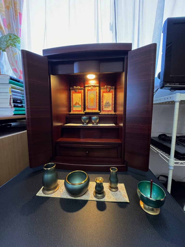 ご夫婦で来店されました。持ち運びできるくらいの大きさのお仏壇をお探しでした。小型ですがしっかりとした造りの家具調仏壇を選ばれました。御本尊はいままでお使いのものをそのまま移動しました。これからも今まで通り見守ってくださることと思います。ご縁をいただき、ありがとうございました。