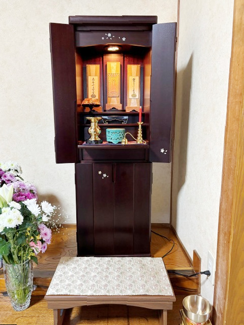 先々の継承を考慮され床の間に設置するモダンな家具調仏壇を選ばれました。この度のご縁、まことにありがとうございます。