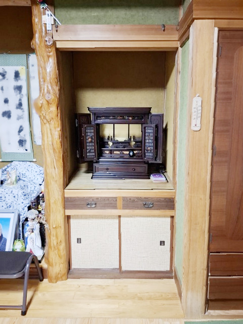 最初は「仏壇はいらない」とおっしゃっていました。お位牌をそのまま飾るのではなく「お家に入れてあげたい」と思われ唐木仏壇を購入されました。「紫檀で色が家に合う。小型なので子供たちにも扱いやすいだろう」と話されました。代々引き継いでくだされば幸いです。この度はありがとうございました。