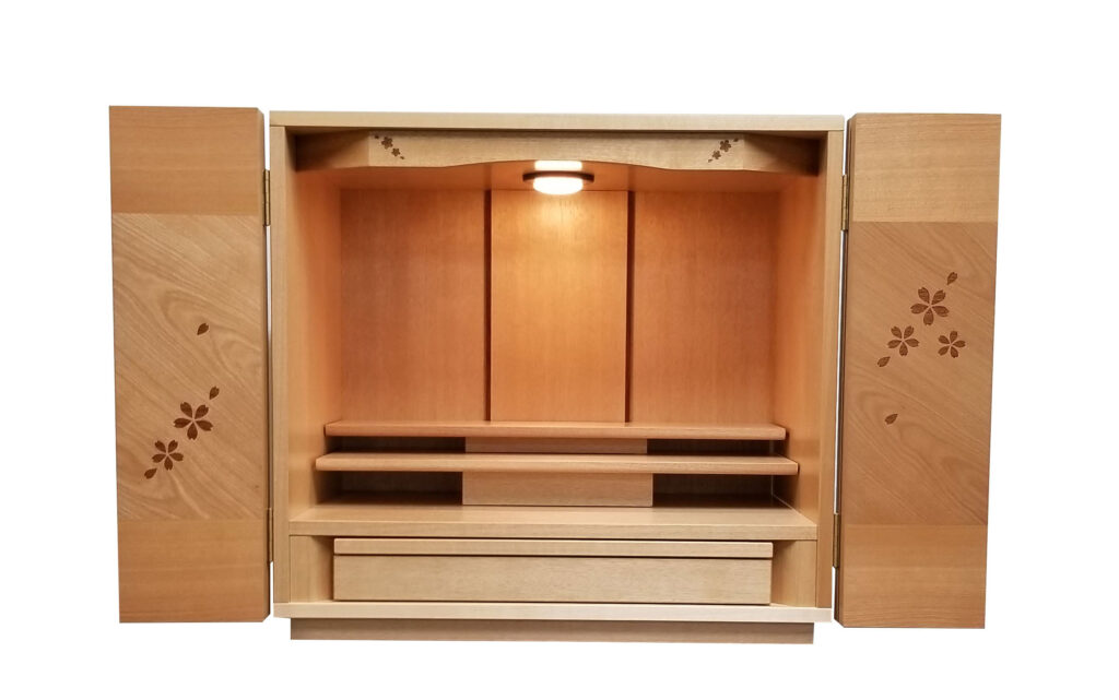 何度も足を運んでくださいました。最愛の息子様のためのお仏壇をお探しでした。候補にあがった3基をご自宅にお持ちして選んでいただきました。下の家具との色合いもマッチして、とても良かったです。仏具の方もぜひご検討ください。またのご来店をお待ちしております。