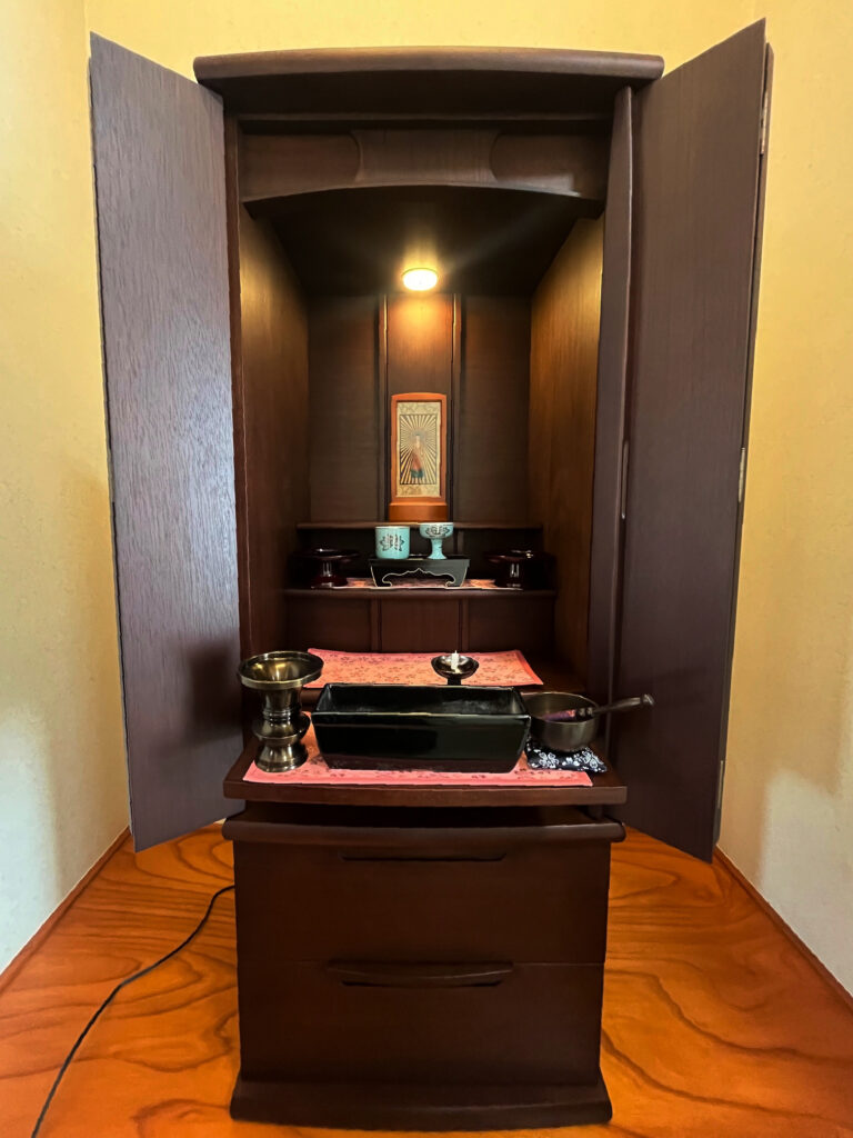 「お仏壇を新しく迎えたい」と来店されれました。2回目のご来店で家具調仏壇に決められました。床に置かれるとのこと。「高さがちょうど良い」と、気に入ってくださいました。これから末永くご家族を見守ってくださることと思います。ご先祖様もたいへん喜ばれていらっしゃることと思います。ご縁をいただき、ありがとうございました。